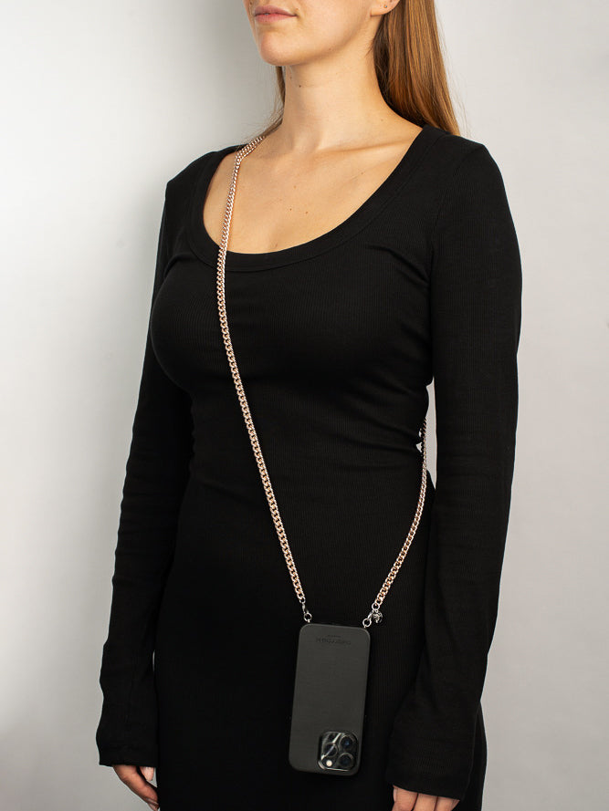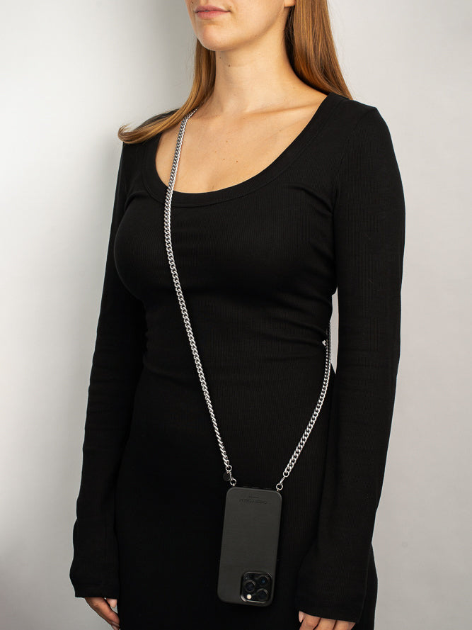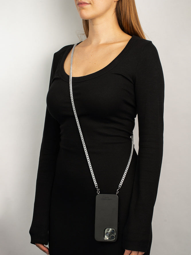 Diese edle Panzerkette mit Stahlverschlüssen macht - kombiniert mit einem unserer Cases - das perfekte Accessoire aus Deinem Smartphone.