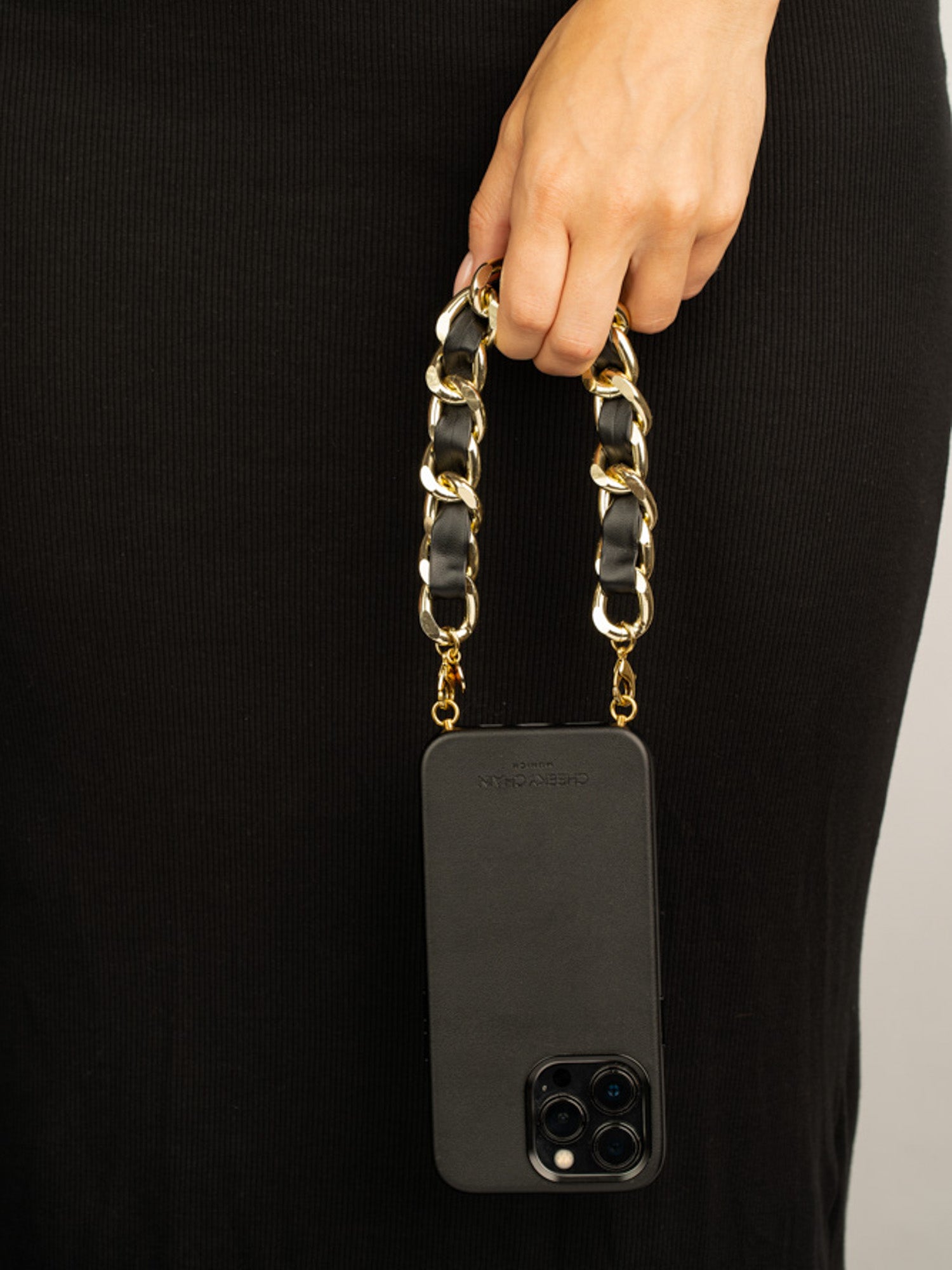 This elegant flat curb chain with steel clasps - combined with one of our cases - makes the perfect accessory for your smartphone.